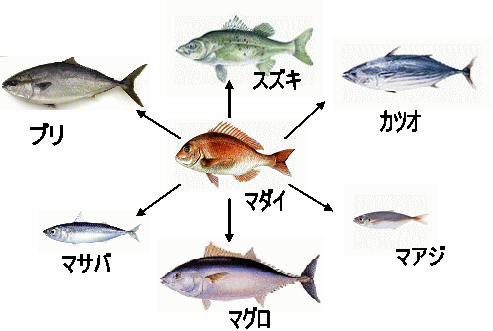 - 真鯛やまぐろなどのスズキの仲間(下図)は、一回に百万個以上の卵を産みますが、ほとんどは死滅するか、地魚の餌となります。